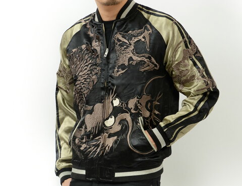 Dragon Embroidered Reversible Souvenir Jacket 伏龍 刺繍 リバーシブル スカジャン スカジャン全体を使って大胆に表現された、巨大な伏龍の姿。