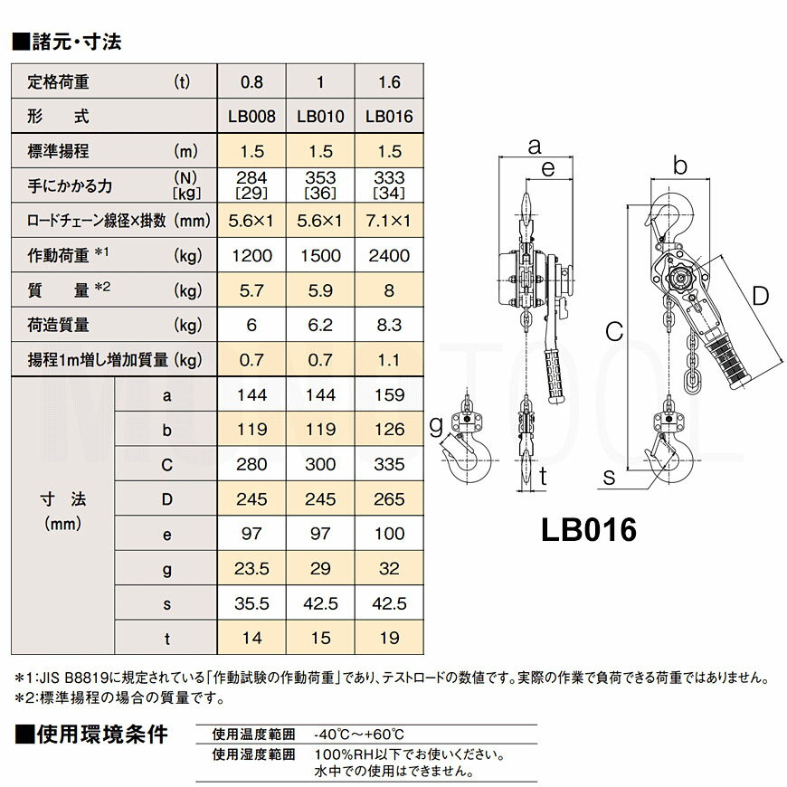 在庫有り★即出荷! キトーレバーブロック LB016 1.6t L5型