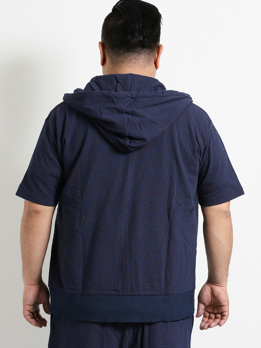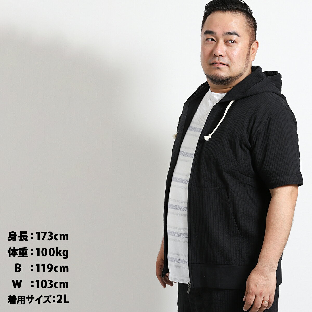 写真上から(75)紺(04)グレー(05)黒素材;ポリエステル65% コットン35%シーズン;夏【大きいサイズ】グランバック/GRAND-BACK ニットサッカー半袖パーカー清涼感がありサラッとした着心地の、ニットサッカー半袖パーカー。