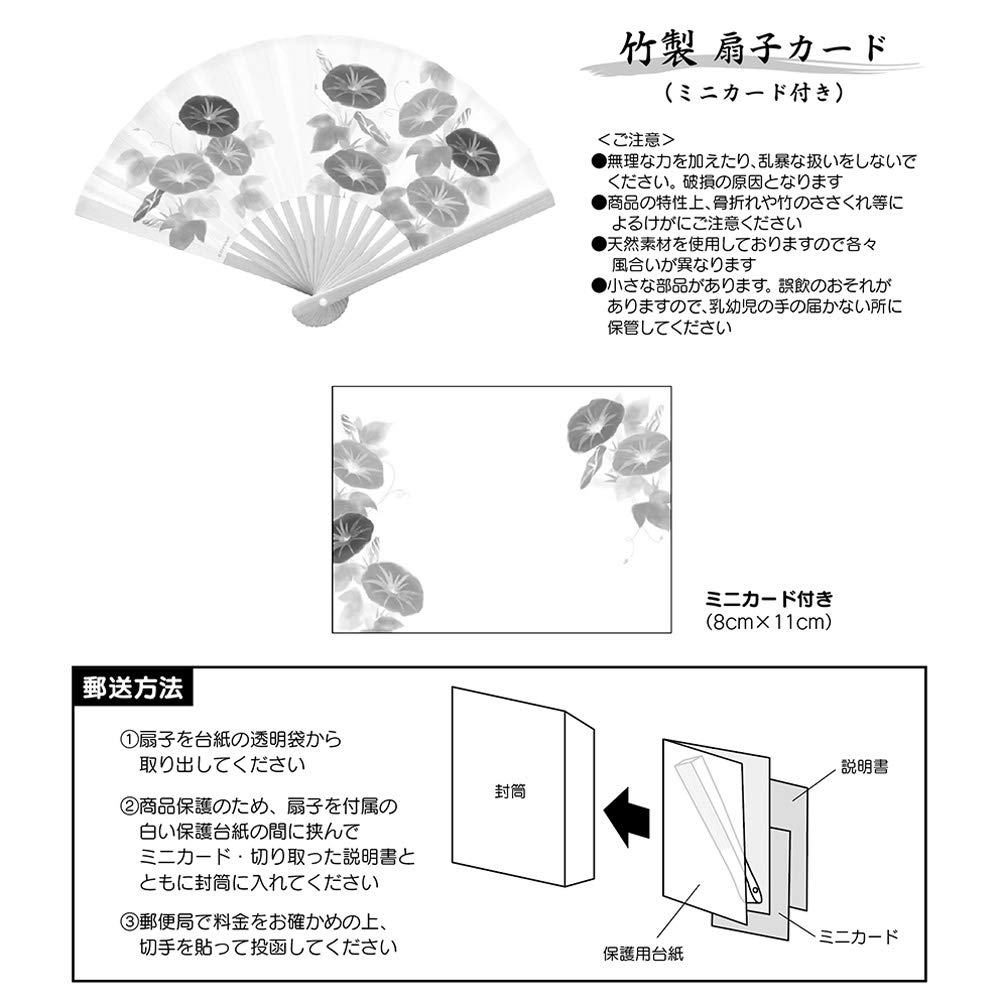 メッセージは付属のミニカードに書くことが出来ます■パッケージサイズ:W175×H270×D12mm■扇子サイズ:W20×H151×D12mm(折りたたみ時)、W248×H162×D21(開いた時)■封筒サイズ:120×172mmミニカード:W110×H80mm■メッセージは付属のミニカードに書けます。