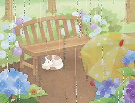 透明素材に銀ホログラム箔で雨を表現し、奥行あり梅雨の情景を表現しています。