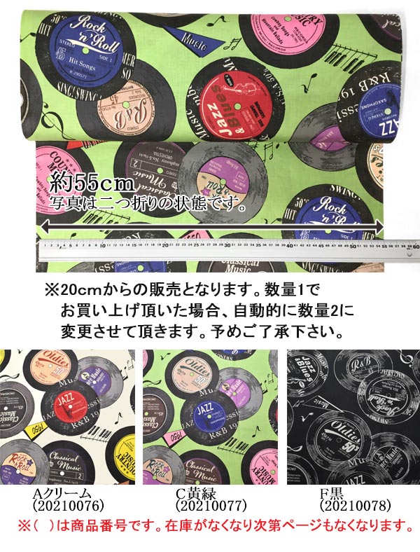 デザイナー おしゃれ 黄緑 キミドリ 1950年 50’ レコード ジャズ ロック R&B ROCK ライムグリーン ミントグリーン 若草色 ハンドメイド 布地 服飾 裁縫 カラー ミュージック MUSIC 音楽 音符 ♪